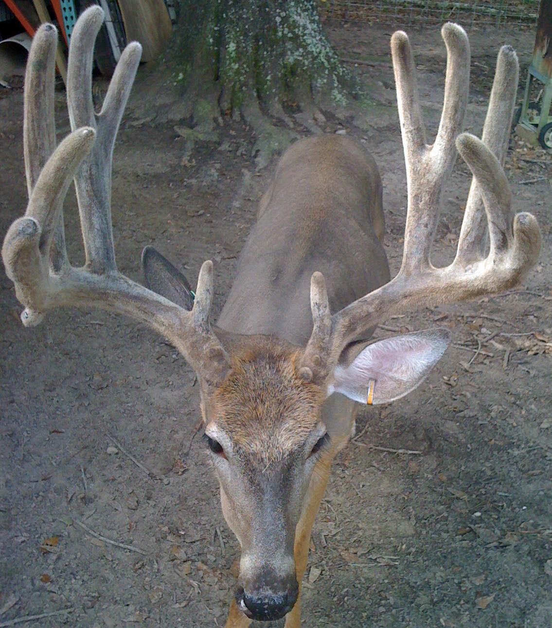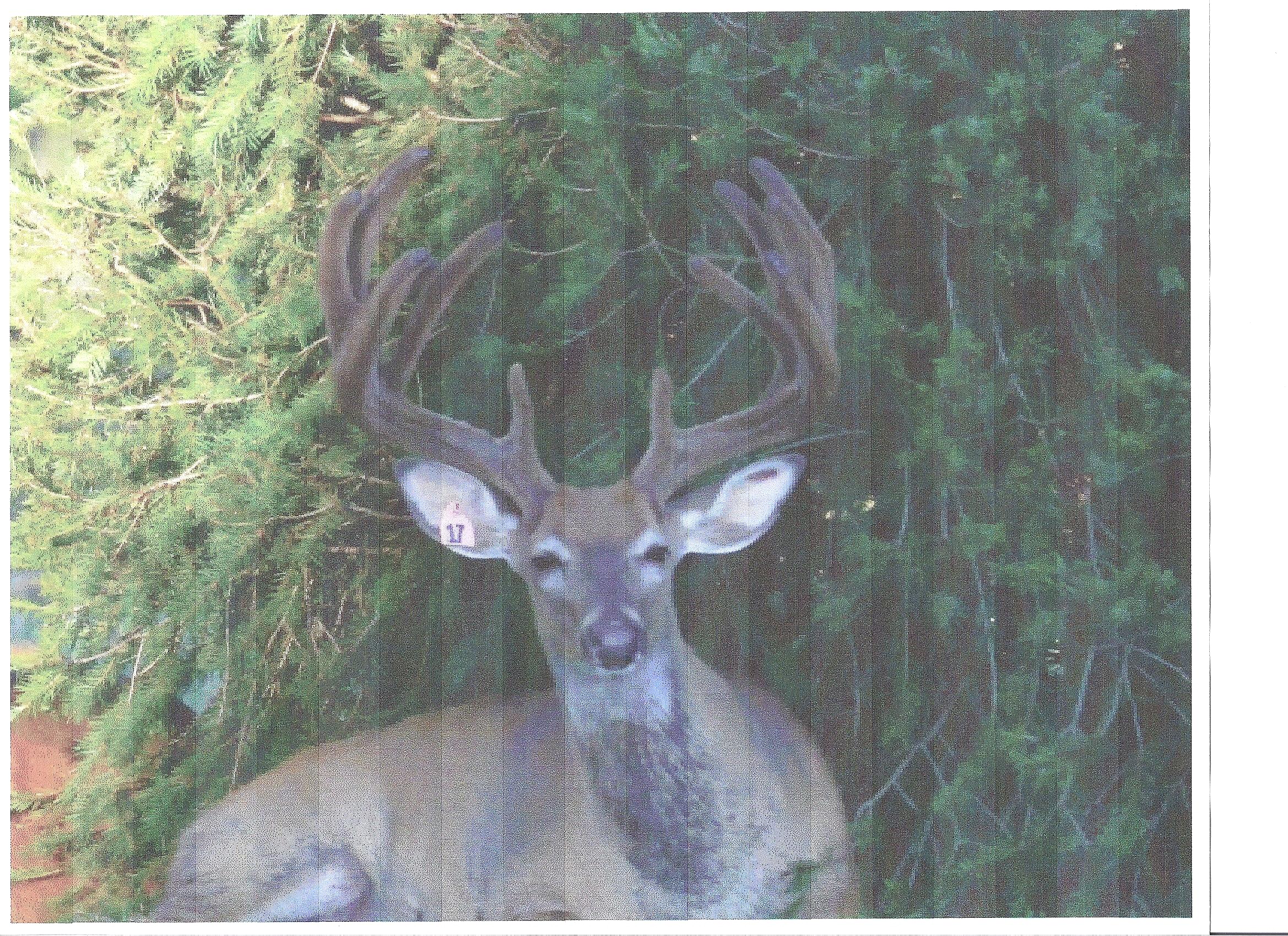 $5000.00 bred Bottle fed 2009 doe Yellow 18 Doux Oscar Louisiana Trophy Whitetails 8 years CWD monitored since 2003, TB Accredited and Brucellosis Certified Owner: Charlie LeDoux |